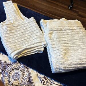 White cropped knitted tank with midi skirt. Worn once. Top is an XL. Skirt is a L.