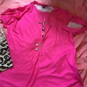 Really cute Two-Piece Short Set, Very Comfortable, Stretchy, , I love it, but a tad too big for my liking. Brand New, Material is like a silky type ( Bathing Suit material) . Measurements for this outfit is listed in the pics.