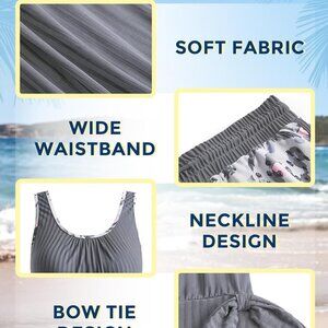 Features: This stylish tankini set offers a tailored blouson top with a relaxed fit and tummy-flattering cinched hem, paired with sporty mid-rise board shorts that provide coverage and mobility. Made from a stretchy, quick-drying polyester-spandex blend — perfect for active days or lounging by the pool.