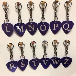 These beautiful purple aluminum picks are brand-new, unused, and have diamond etched monograms on both sides. They are approx 1mm thick. The length of the chain and the pick combined is approx 2 1/2 inches, and the keychains are a gunmetal color that I make myself. These could be nice for a backpack, duffel bag, handbag, purse, etc. Consider one for your music lover friend, or that special someone for their birthday, Christmas, graduation, etc. The benefit of diamond etching is that it will last a long time. My goal is to roll out a new color each month for the next six months in batches of 100, for a total of 7 available colors. I am working alone, and am limited on how much I can produce by myself. I will guarantee my work under normal wear and tear. Any questions or comments, feel free to reach out. I am open to special requests!! Thx, Michael