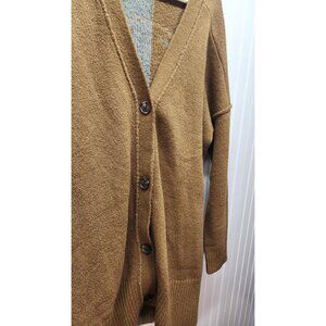 Two-Tone Brown & Gray Skull Graphic Cardigan Sweater Button Front Long Sleeve Ov