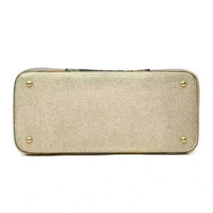 Gold-tone hardware, accents, zipper pulls and bottom studs.