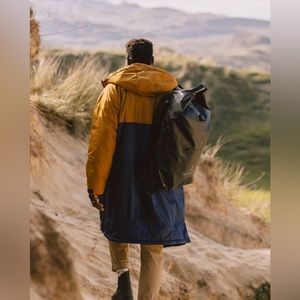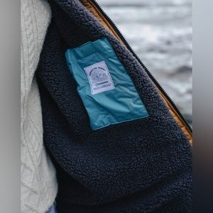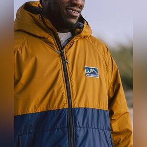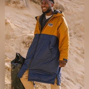 Stay warm and stylish with this two-tone hooded jacket. Featuring a sleek design, it's perfect for outdoor adventures. Only worn a handful of times for cold plunging!