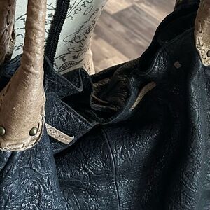 Stylish and versatile, this two-tone leather shoulder bag is perfect for any occasion. The black and tan design adds a touch of elegance to your outfit. This is a pre loved Camila Alves designed Hobo bag, the leather is like butter, supple and soft. Please see all fotos and video, it is truly one of a kind, perfect for someone who loves slouchy model wear large bag