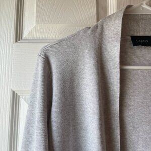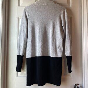 A stylish and versatile cardigan in excellent shape, featuring a light gray and black color-block design. Perfect for layering in any season.