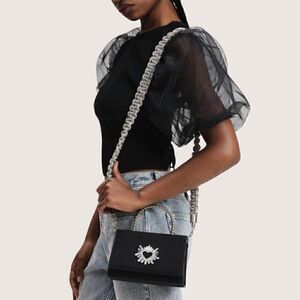 Two-Tone Sparkle Rhinestone Crystal Detachable Braided Handbag Strap