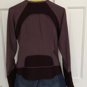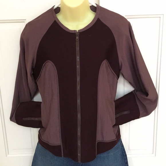Stylish two-tone jacket with a front zipper🍆Features a mix of dark and light plum 🍷shades🍆Fully lined 🎆 superior construction 🔮appearance looks like never wore🍆 pit to pit 19”, sleeve 24”, shoulder to hem 23” 🍆 58% silk, 42 rayon