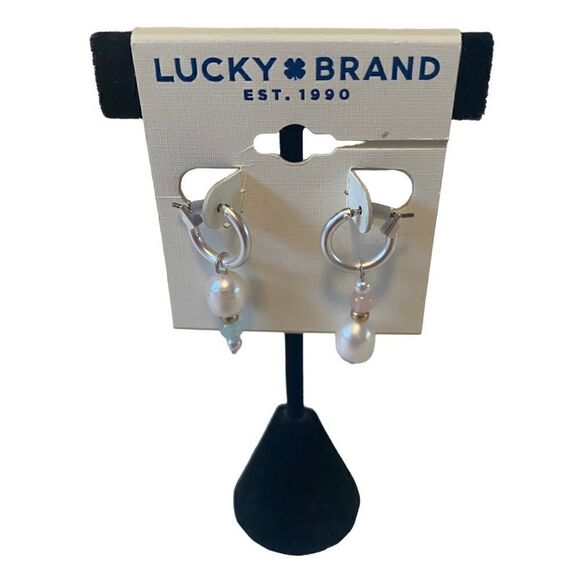 Two Tone Pearl Drop Huggie Hoops