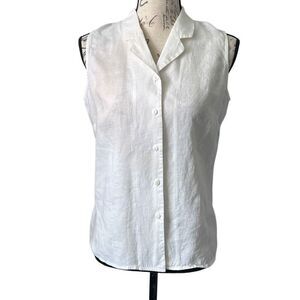 Two Twenty Five White 100 % Flax Linen Sleeveless Button Blouse M