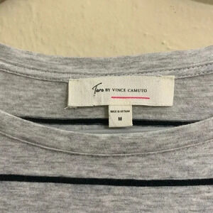 Two by Vince Camuto Women's Size Medium Nova Thin Stripe Bell Sleeve Blouse Grey.