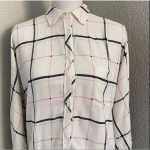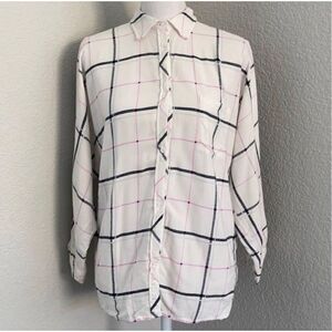 Two by Vince Camuto Oversized Off White Plaid. Size XS. Super soft and cozy boyfriend style shirt with slight dolman sleeves.