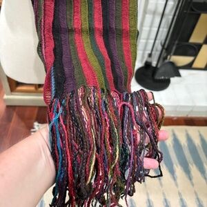 Add a touch of color to your winter wardrobe with this layered striped multicolor scarf ~