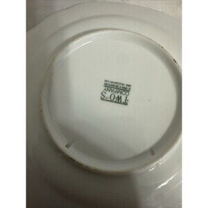 Add a touch of elegance to your dining table with this beautiful Two's Company decorative plate. The round plate boasts a stunning design of blue flowers and green leaves with a gold trim that gives it a unique and classy look. The plate is made of high-quality ceramic material and has a glossy finish that complements any decor. This two-piece set of plates is perfect for all occasions, whether you're hosting a dinner party or having a casual meal with your family. The plates are 6 inches in diameter and are printed with the brand's backstamp. The plates are an original product of the Two's Company brand