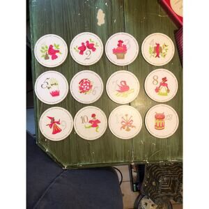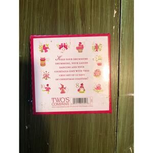 Two's Company NWOT 12 Days of Christmas Set of 12 Coasters Cork Backed