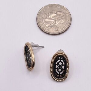 Two-tone Gold Edge Black Filagree Designed Center Earrings