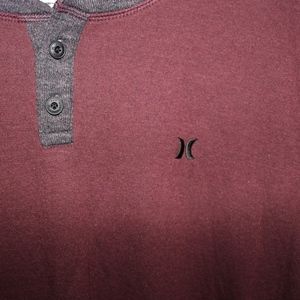 Maroon quarter-button henley long sleeve shirt with gray sleeves. Never been worn.