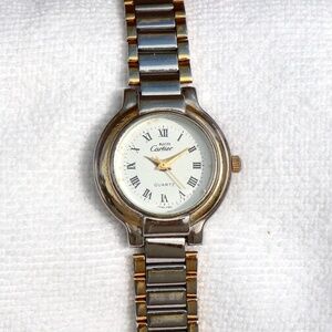 Round ladies two tone must de Cartier quartz watch 24mm diameter with new battery