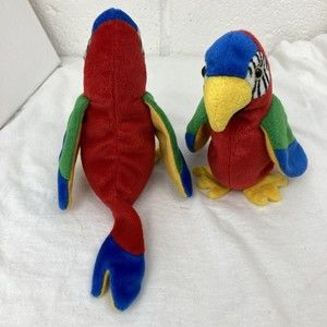 Two Ty 4197 Beanie Baby "Jabber The Parrot Tropical Bird" Retired.