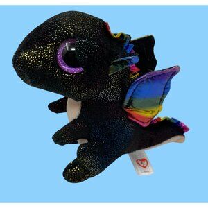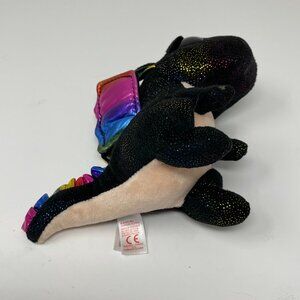 Ty Anora Beanie Boo Plush Dragon 6" Black Rainbow Wings Sparkle Accents Goth