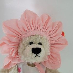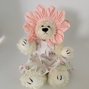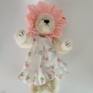 This bear is 9" tall. She does not show any signs of play. No rips or stains.