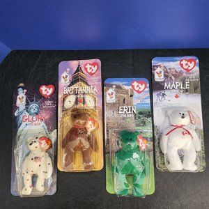 Ty Beanie Babies Complete Set (4) with Rare Tag Error 1999 McDonald's Erin Brita