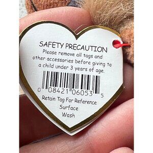 This Ty Beanie Babies camel plush toy is a collector's item from 1998. Its decorative rug blanket adds a touch of cultural flair, featuring intricate patterns and fringe detailing.