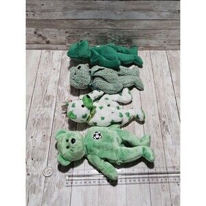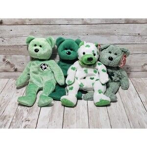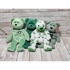 Ty Beanie Babies Lot of 4 Kicks Shamrocks Clover Erin Green Stuffed Animal Toys