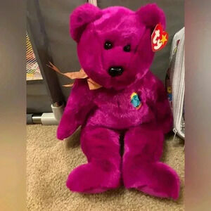This Ty Beanie Babies Millennium Bear Plush Toys- Purple, Tan, Pinkish Purple 2000 is a must-have for any collector or fan of the popular beanie baby line. The bear features purple, tan, and pinkish purple colors and was manufactured in China in the year 2000. It is recommended for ages 3 and up and is a great addition to any beanie baby collection.