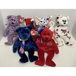 This charming collection features 6 Ty Beanie Babies, including patriotic bears and an elephant, perfect for collectors or as a gift to show your American pride.