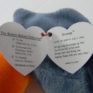 Ty Beanie Baby "Scoop" is vintage and in excellent condition. Tag is attached with protector.