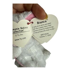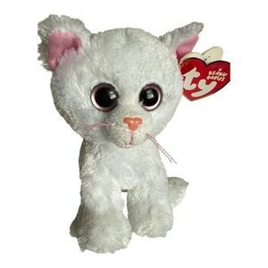 Vintage and Adorable white cat plush from Ty Beanie Babies. Features pink ears and nose.measures 7”.