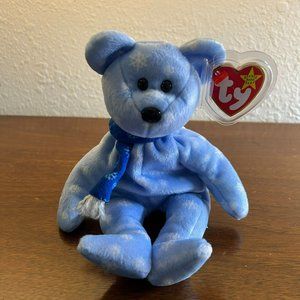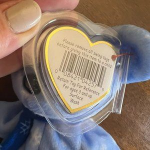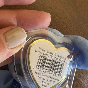 Includes tush and swing tag. Swing tag is in protector. Bear is in protective plastic casing.