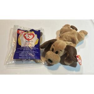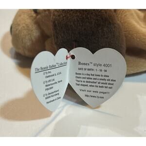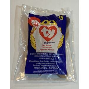 This Ty Beanie Baby named Bones The Dog is a collectible toy from 1993/1994. It comes with a tag error and is still sealed in its original package. The toy is made by Ty and belongs to the Beanie Babies-Original line. Its recommended age range is 3+ and it belongs to the Beanbag Plush category. Bones The Dog is a member of the popular Beanie Babies character family and is now retired. Get your hands on this rare collectible today!