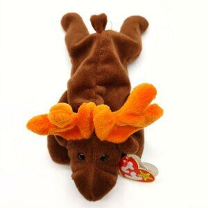 This charming and nostalgic Ty Beanie Baby, known as Chocolate the Moose, evokes the simplicity and joy of childhood collectibles. With its rich brown body and vibrant orange antlers, it showcases the timeless appeal of Beanie Babies from a bygone era. Whether displayed as a collectible or cherished as a cozy companion, Chocolate the Moose is a delightful reminder of playful pastimes.