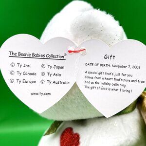 Gift (White) 2003 White plush w/ glitter, gold wings. Embroidered Love heart on chest. Tag confirms the "Gift of Love."
