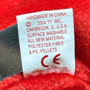 Gift (Red) 2003 Red plush w/ glitter, gold wings. Embroidered Peace tree on chest. Tag confirms the "Gift of Peace."