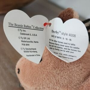 π΄ Ty Beanie Baby βDerbyβ the Horse β 1995 Vintage, No White Marking
