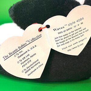 Fun under-the-sea themed lot of six Ty Beanie Babies including Jolly the walrus, Waves the blue dolphin, Waves the black orca version, Lips the colorful fish, Paul the brown walrus, and Claude the tie-dye crab. All have attached heart hang tags and tush tags with dates from 1996–1999, soft plush bodies, and pellet filling; condition ranges from very good to excellent with light display or storage wear. Ideal starter bundle for a new Beanie collector, nautical nursery décor, or anyone who loves marine animals.