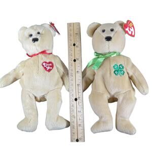 Ty Beanie Bears Pair Thank You Heart & 4-H Shamrock Collector Bears
