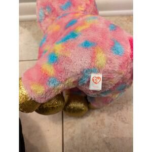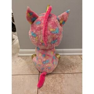 This is a Ty Beanie Boo JUMBO plush toy featuring the character Fantasia, a pink and gold glitter unicorn. The toy is large at 17 inches and comes in a multi-color design. Eyes are a bit scratched. No tag.