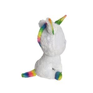 This Ty Beanie Boo Pixy Unicorn captivates with its Tysilk soft plush texture and vibrant rainbow accents.