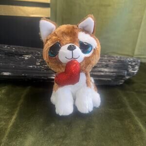 Adorable Ty Beanie Boo “Smootches” the Dog is ready to steal hearts! This 6-inch Valentine’s Day plush features soft TySilk fur, sparkling blue glitter eyes, and a glittery red heart held sweetly in its mouth. Released as a special Valentine edition and now retired, Smootches is a must-have for Beanie Boo collectors or the perfect unique gift for someone special. This plush is in mint condition with original tush tag, smoke-free storage, and vibrant colors. Add this lovable pup to your collection or gift it to brighten someone’s day. Surface clean only to preserve softness and sparkle.