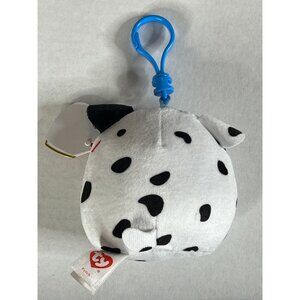 Super cute Ty Beanie Boos Cow Clip — soft white and black plush with sparkly blue eyes and plastic clip for backpacks, purses, or keys. Perfect collectible or small gift! New with tag and in excellent condition.
