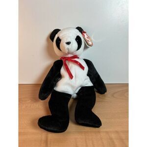 Ty Beanie Baby Fortune Plush 8in Panda Bear Stuffed Animal Retired with Tag 1998.