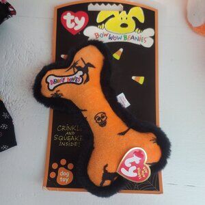 Ty Bow Wow Beanies Bone Dog Toy Halloween Crinkle Squeaker Skull Cat Witch NEW