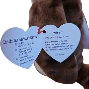 Adorable 1998 graduation beanie babies owl with a black cap and orange tassel. Ideal for collectors.
