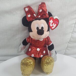 Ty Disney Sparkle Minnie Mouse Medium 8" Plush Red Polka Dot Dress NWT 2021