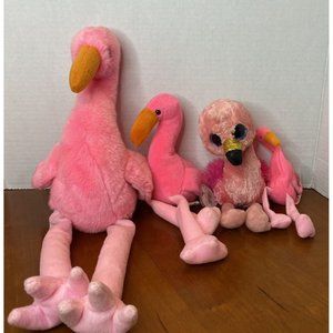 Ty Flamingo Plush Lot of 4 Beanie Buddies Babies Boos & Mini