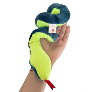 Each had slightly different coloration, with this one featuring a light green belly and a marbled teal upper. While first-generation Hissy snakes tend to sell for the most, all versions are valuable when kept in good condition.