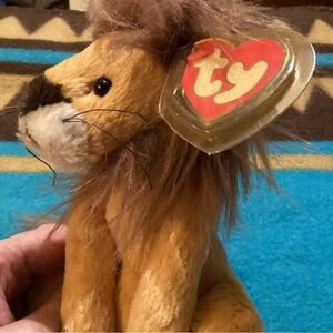 Adorable Ty Kingston plush lion toy in a soft brown color. Perfect for kids who love cuddly animals. Vintage, displayed only condition. Tags attached and in a protective plastic case. See pictures.
